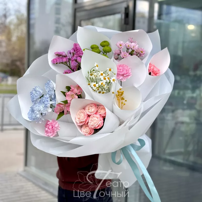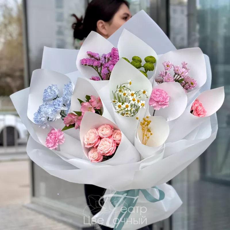 Хочу выразить огромную благодарность «Цветочному театру» за работу и внимание! Заказываю цветы с доставкой из другого города у вас не первый раз; девочки вежливые, организованные, реагируют на сайте быстро. Букет потрясающий, милая открытка!Доставка вовремя, мама приятно удивлена и счастлива!